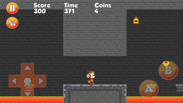 Story starts in Jungle World where you have to fight with jungle monsters like monkeys, snakes and more. In jungle world there is 20 levels, same in other worlds. Also you can find 3 other worlds like lava cave world, castle world.