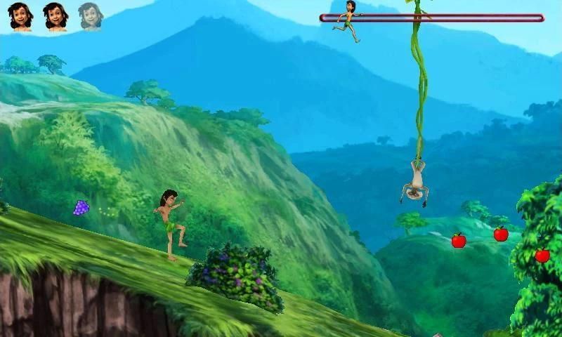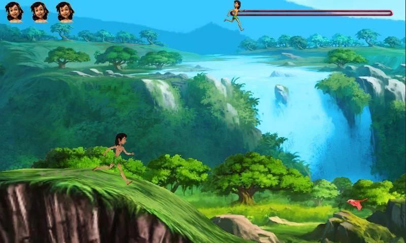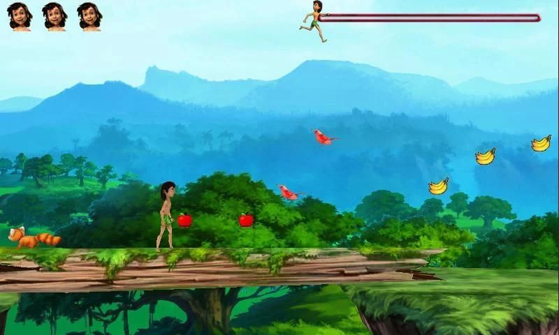 Mowgli has rescued a baby fox from Sherkhan's cave and is being chased by the evil Sherkhan. Help Mowgli escape from being caught by Sherkhan by jumping and sliding over different obstacles along his path.
