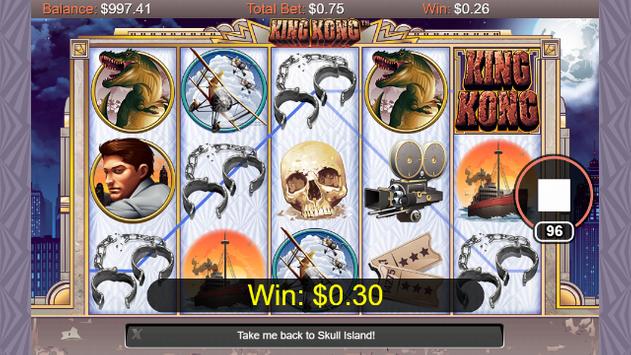 King Kong is played on five spinning reels with three symbols on display on each when your turn comes to an end. The 25 paylines available are fixed, which means that you cannot bet on less than that at every turn. All you need to do before getting the game started is choose the size of your wager by using the bottom switches. Remember that a bigger bet yields potentially bigger wins during the game, so your initial courage might be rewarded in the long term.