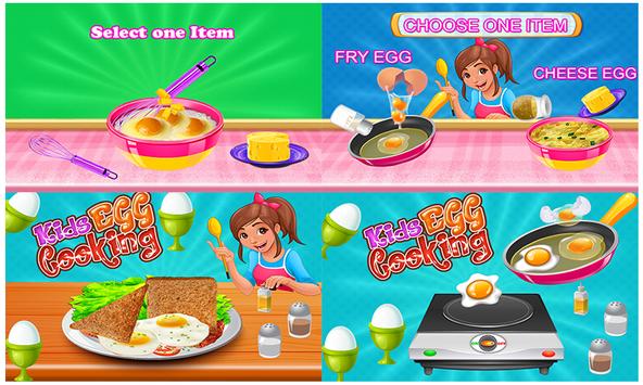 is loveable to all kids Cooking is always fun for little kids boys and girls and for all ages So get ready to bake breakfast meal with a new fun and adventure of Egg maker cooking. This food maker game is specially designed for kids with attractive graphics, fun activities, and realistic breakfast egg maker recipe learning game play. Be a part of this cooking contest and make most delicious fired up eggs, eggs salad and other delicious cheese, sausage and spice topping eggs with Egg Cooking. ¬Yummy eggs with multiple flavored to make your meal awesome.