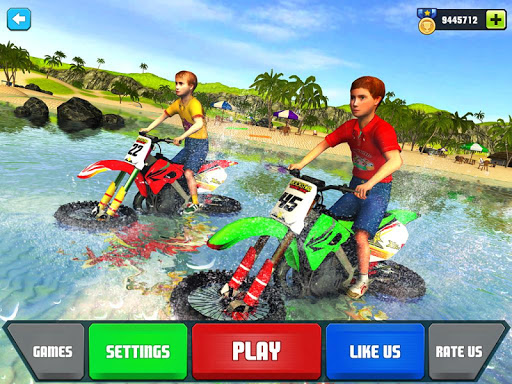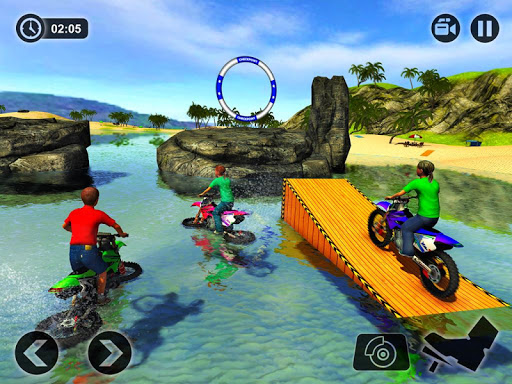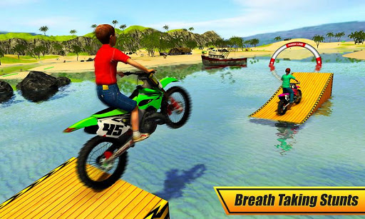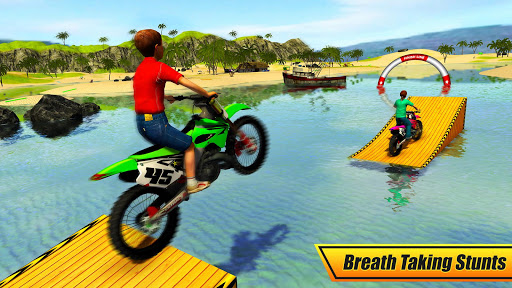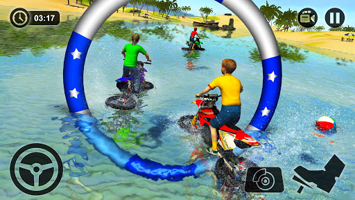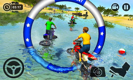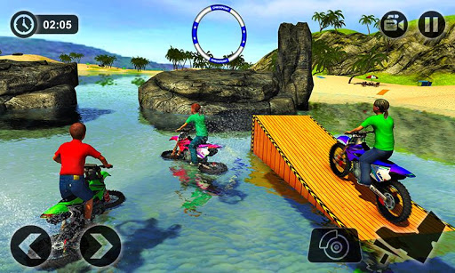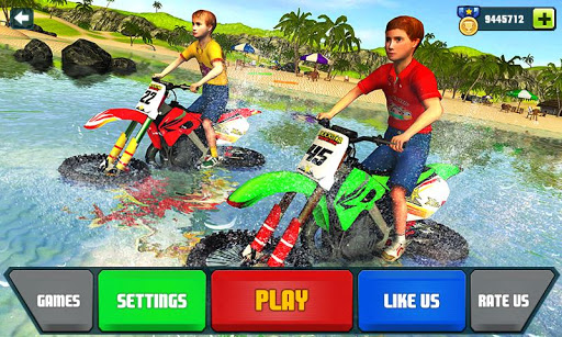 Have you ever dream of racing in water? If you love water surfer games then this Water Surfer Motorbike Racing game is for you. Here you can drive bike on the beach with other surfing motorbike riders. When the bike jumps into water from beach sand the Tyre of the motorbike are transformed then you can race like a jet sky on the sea with racers. While beach racing perform mid-air jumps from the ramps. This is unique offroad racing and driving game on water surface and beach. Transform your motorcycle into floating motorbike to get real adventurous water surfing experience. In sea run racing do amazing stunts while bike jumping on water surface. Enjoy the water simulation with new water surf seagame.