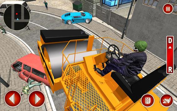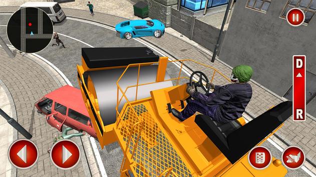 Clown City Destruction consists of various wrongdoing related missions including extortion, robberies, super clown juggling and extreme crime escape scenes with the help of extraordinary driving skills. Police chasing hazardous crook clown is a fun to outrage the law enforcement in your city. In this killer clown action game you are driving heavy vehicles like crane excavators, bulldozers & other construction machines. Your main job is to destroy innocent people's vehicles and scare them with extreme driving skills. Rough terrain vehicles, dark smoky roadside crime scenes, crazy clown attack stories is all this Clown City Destruction is about. Collect as much coins as you can and rule the underworld mafia of limitless war crimes.