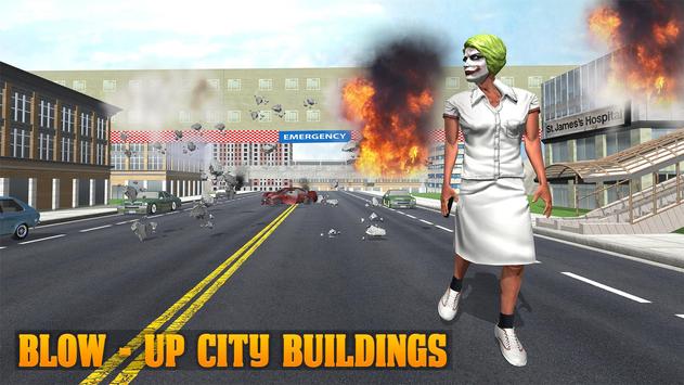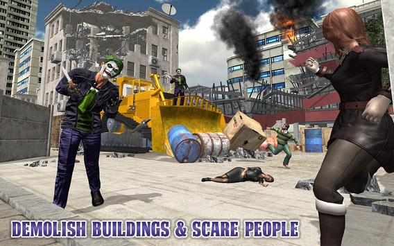 Prepare for genuine monster creepy clown city destruction challenge. Its time for you to take out your childhood hidden clown monster and start a real life hunting & doing clown pranks experience. This killer clown city destruction simulator is a phenomenal game based on city violence and demolishing the city structures by hiding your true identity and fooling the Police and public. In this game, you have to appear as a spooky & creepy clown who is responsible for creating violence and causes a great deal of fear especially in children. Choose your favorite creepy killer clown and make innocent city people scream upon sight of you. In this one-of-a- kind game, it’s your job to wreak havoc as an creepy killer clown. Strike terror into town residents’ hearts in different terrifying places. Destroy as many cars, bikes and city buildings as you want with heavy machines.