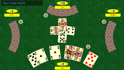 2-do Not take the Hearts Here, it is not advisable to take tricks which contain any card of hearts suit. For each heart minus 2. In the drawing -16 points.