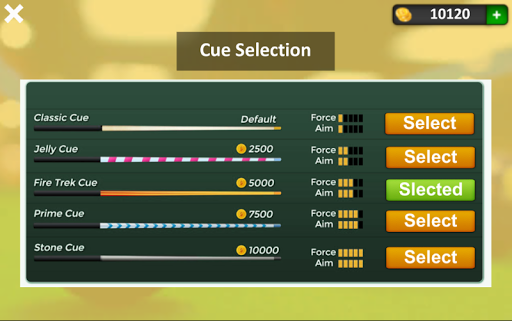 You can buy / upgrade many stuff in the game shop. You can upgrade your cue