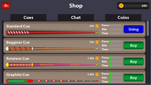 Play For Coins , Customising Cue Table and other Items. Customise Your Table And Cue by Wining Coins Or purchasing Coins or buying new items from king Pool Shop.