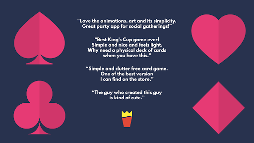 King's Cup is designed to bring Material Design to all aspects of the game. PERFECT app on your phone for game nights, birthday parties, you name it!