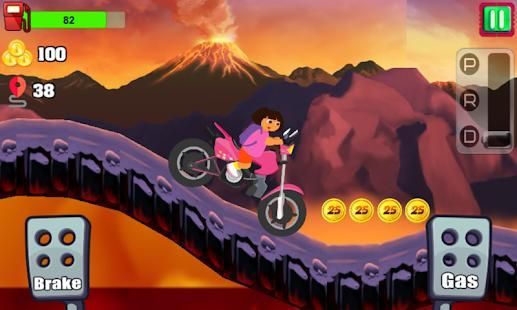 Let's come play dora games and have fun while adventures and teh explorer with dora doras and her friends in the magical jungle climbing mountains with a very beautiful motorcycle.