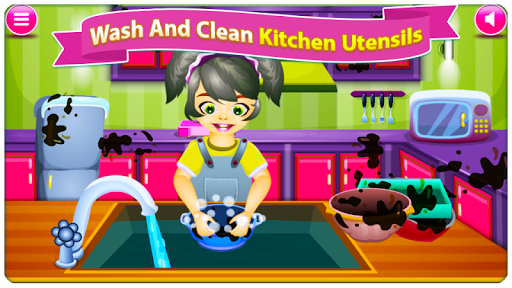 Educational game by teaching children responsibilities like dish washing and cleaning the kitchen