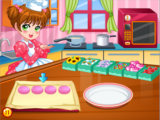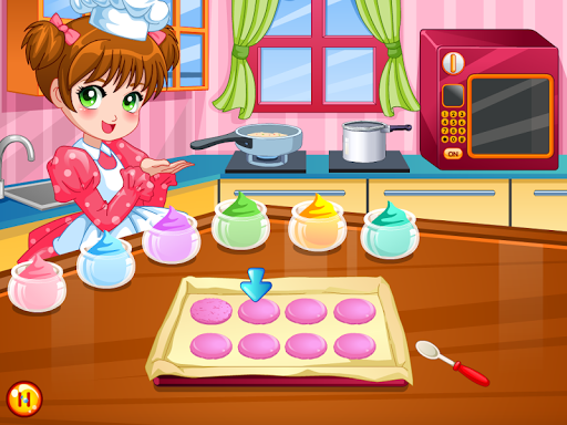 cooking game to make macaroons and macaroons for children, boys and girls, help this girl to make her macaroons. you have a beautiful kitchen with all the utensils and appropriate oven recipe and ingredients.