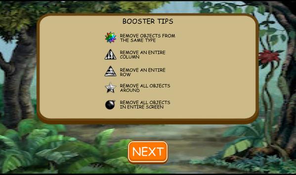 This will eliminate the gems with the same color. When You match 4 or more objects, a booster is created. In this match 3 game You get 5 different types of boosters.