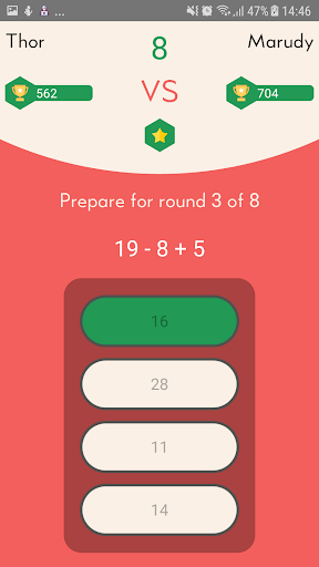 The gameplay is designed to improve your focus, stimulate the mind, and enhance the cognitive processes of the brain. Just a 10 - 15 minute 1vs1 game session in the math arena per day is enough to sharpen your math skills and advance your knowledge.