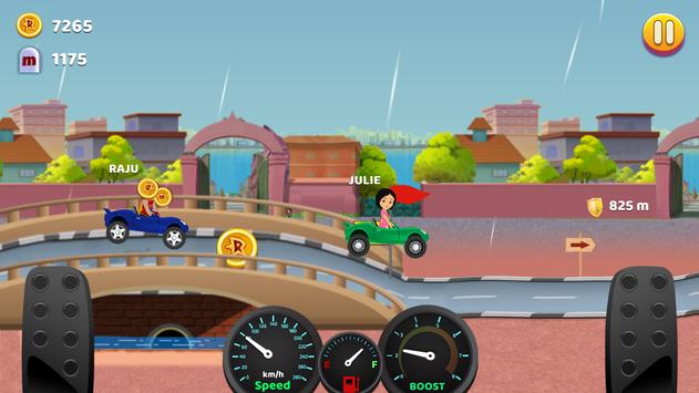 Race in four different locations based in Aryanagar. Collect coins along the racing tracks to unlock tons of new characters and awesome cars. Come and have a fun racing with your famous cartoon character Mighty Raju!