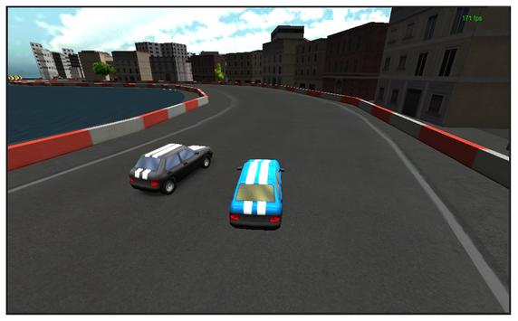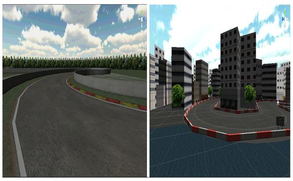 There are two racing tracks, one with city environment and the second with green on plane land track.
