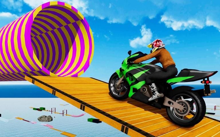 Have you ever tried to perform the bang stunts on tricky bike stunts tracks? If no then try this tricky motorbike stunts using motorcycle stunting in this stunts plane game. You are a real stunt rider whose chase the overtake challenge with the bike adventure by showing stunt drive. Become Crazy moto stunts rider with the exiciting stunning hurl bike brakes. Hurry up for the extreme trail impossible stunts race use the bike brakes first time in this game and write your name on this list of top bike roadmasters. Stunt Riding is a passion for the bike wheelers and the bike racers do moto hill stunt and drive impossible tracks this game is best for all different kind of bike stunts game. This game concept is based on the tricky motocross race with real stunts on the risky crossroad. Sky bike is used in this game many Suzuki motos are designed and modified in this gt racing bike game. This game you can say is extremely hard de Corsa with the one wheel stunt racing. Racing hill in real life you can assume in this sky-racing. A crazy impossible bike track is like a kind of impossible jet car stunts with the big bike wheels drive. Different obstacles to bike attacks crazy will destroy you in motohills stunts. This bike attack crazy is a very dangerous and impossible mission game. Be a stunt driver in this amazing beautiful big jumps game. There is no option for mistakes but you can say this game is a freestyle bike stunts game.