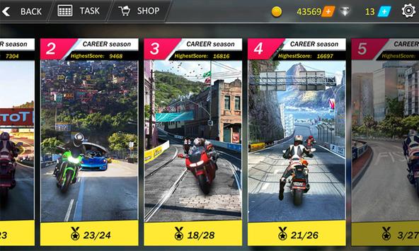 There are different levels of bike, each with its own characteristics; choose your motorcycle, ride your bike and start your game!