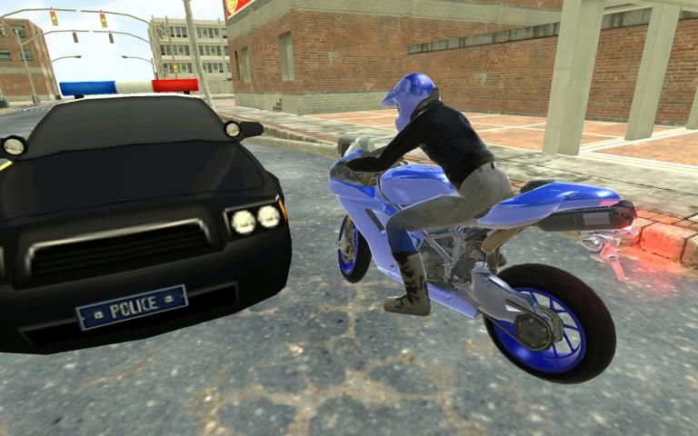 Motorbike vs Cop Car Chase best city moto bike driving,police car chase simulator game with simple control.Don't catch police car with moto bike.