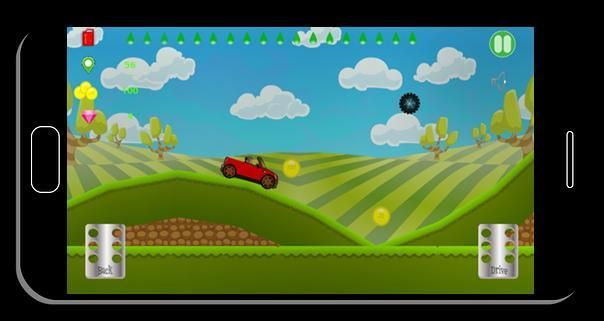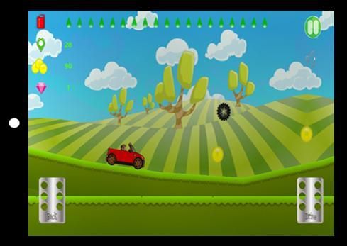 You drive your car through mounds and hills springs views in a red car that climb hills and avoid a meyterious haunted wheel from hell.