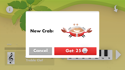 Just select your crab, your keyboard and begin the game. Beginner’s Tip: On level 1 pick treble clef or bass clef and let the keyboard notes guide you. Listen carefully to the intervals between the notes to work out the name of the next note. The better you get at reading the notes, the larger the intervals become and the harder the sight-reading becomes!