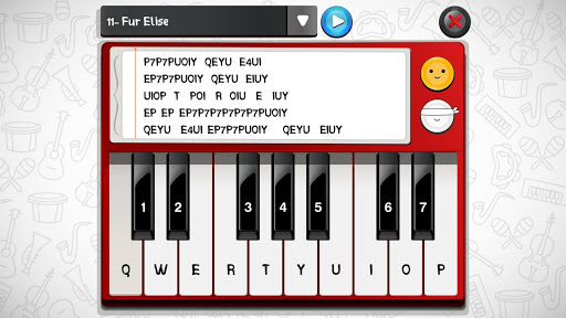 This game in integrated with the musical sounds game. This game aims at helping the player to learn to play the piano by playing 15 recital included in the list, the song can be heard and then play the written note, the player also can play without reading the note by hiding it to test performance, also the player can play any favored note outside the listed options. The player can move to the Musical Sounds game, which help to determine the correct musical instruments based on the played musical sounds.