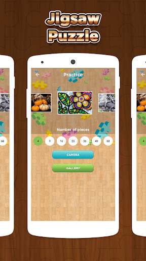 - Create custom puzzles from your own photo collection (Camera or Gallery).