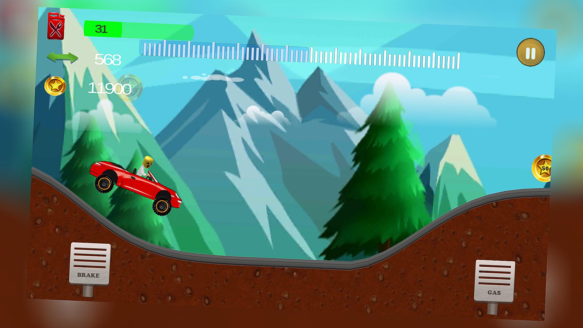 Choose a car you like most! Tap the pedals to control the speed! The gas pedal is on the right, and the brake pedal is the one on the left.You should drive and collect all the coins on your way! Watch the fuel level and don't you run out of gas!The most important thing:Don't let the car overturned.Just tap the pedals to become a professional mountain rider!