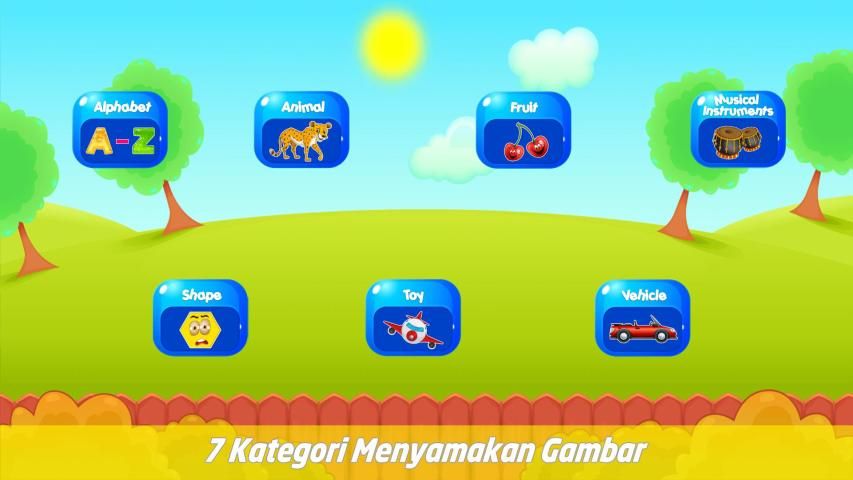 2. Puzzle Game Category: in this category children - children are expected to be able to recognize and analyze shapes, colors and images in accordance with the examples given, by giving this game to children it is hoped that children can hone the ability to analyze and also solve problems. This category is designed with very interesting content, there are lots of images like fruits, animals, musical instruments, shapes like triangles and squares.