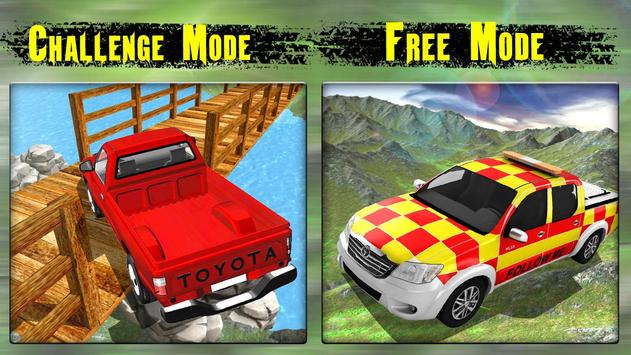 Time to drive offroad hilux to rescue the people. Challenging rescue mission are like attending to impossible mission. Hill climb truck on stricky offroad with a new challenge. Reach at the destination point ladenberg. Presenting best offroad game for you. Become a rescure on heavy truck and helps the people. Offroad truck jamed on road get out from muddy way. Control the todoterreno in vehicle. With free and challenging mode which is not yet in best offroad games. 4 wheel offroad trucking we try to design more adventurous more then 6x6 truck or other vehicles. Surly everyone enjoye this bumpy road game. A hillclimb challenge with rescue missions. Ready for crazy off road and danger bridge drive. offroad truck transporter pitched in rock and offroad hilux pul out of that. 4x4 crazy offroad hilux drive that you never seen before.