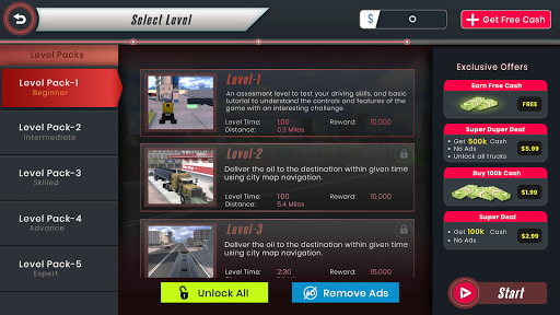 There are different challenges like Truck Driving, Time management, Parking, Refilling, Attach to the different trailers and drive heavy cargo vehicles to the destination point within the given time. complete the missions and make money to unlock new amazing powerful trucks for more fun and full of adventure.