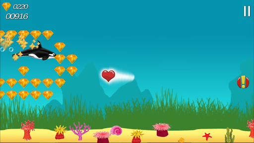 **Tap and hold to make Orca go up and release to dive deeper as you navigate your way through the dangers ahead! Collect as many diamonds as you can get! Be the hero arcade player in the game in this sea of whales!