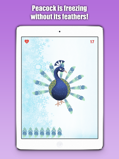 Peacock lost almost all its tail feathers. Pin all lovely colorful feathers in the spinnig tail and reveal the secret of the Peacock “Precious”! ;-)