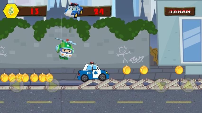 There are four characters you can use a car that is poly, amber, roy and helicopters that can be used to defend the truth by pursuing the robbers fled.