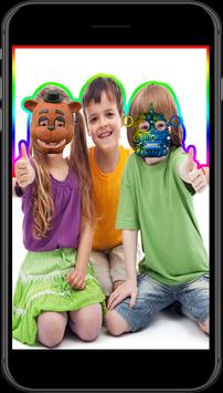 Fnaf photo sticker lets you make Photos with different action Fields and lets you put on Nightmare survival horror mask on your head out of the “photo montage”.
