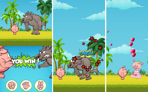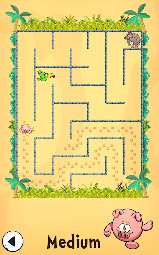 “Piggy Maze Runner” is a collection of 90 maze levels for young children, along with a delightful fairytale storyline. Piglet is on a super mission, he needs to save the pretty princess by solving different labyrinth puzzles. He could really use your help to find the way out of the puzzle and confront the strong wolf or the scary dragon. There’s a plot twist though. He needs to play the Rock-paper-scissors game and win - in order to defeat the opponent and save the lovely princess, Miss Piggy.