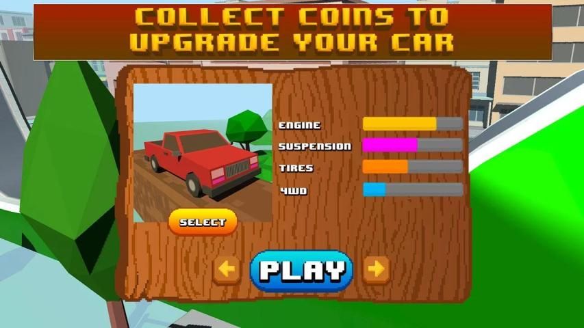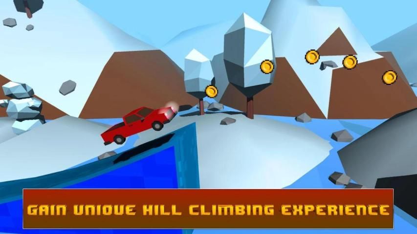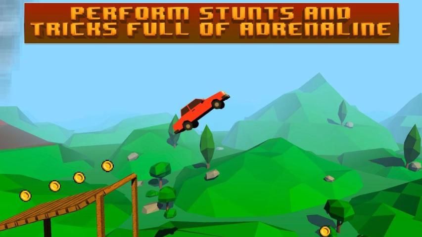 Gain unique uphill and downhill climbing experience performing extreme stunts sitting behind the steering wheel of powerful pixel car! Explore outback roads, jump through obstacles, cross hurdles and fly high performing new car stunt! Start this thrilling ride and feel pure adrenaline playing this extreme uphill climbing racing game in 3D! Drive as far as possible to collect more coins and use coins to upgrade your pixel car or even buy more powerful one! Gain bonuses performing stunts and doing tricks with amazing physics-based mountain climb racing game!