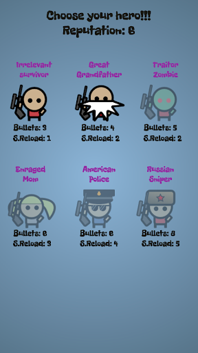 To unlock characters and have more options to survive the zombie horde, you must gain reputation, which is achieved by hitting shots with your sniper without fail, and enduring full days the zombie horde.