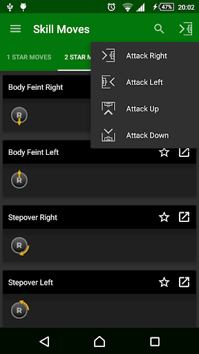 Select the side you are attacking (right, left, up, down) and skill moves are automatically rotated! Player Guide for Fifa2015, the only guide in play store with this feature!
