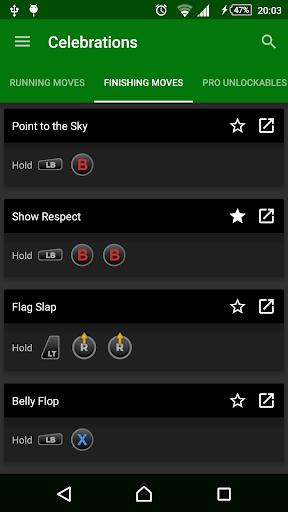 - Running moves, Finishing moves, Pro unlockables, Eas fc unlockables