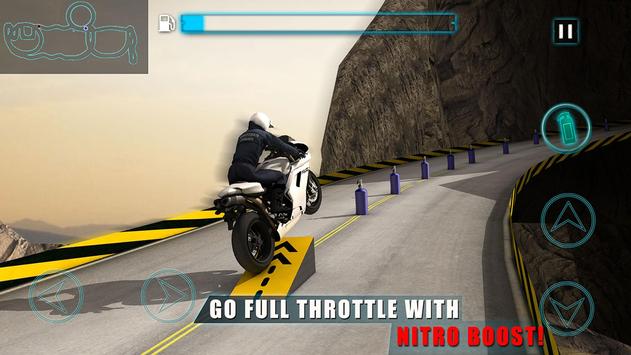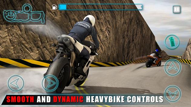 Crime rate is on the rise and gangsters freely roam these steep mountain roads. As the real motorbike cop you need to catch these bad guys and bring peace to the city. Criminals are trying to escape the crime scene and that's where you come in. Hop on your heavy bike and start chasing these thugs in a hill climb race. They will race you to get away but go full throttle with the super charged nitro boost and don't let them escape. Beware of the sharp turns dodging SUV and Humvee in the traffic to avoid any accident.