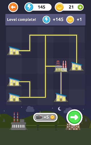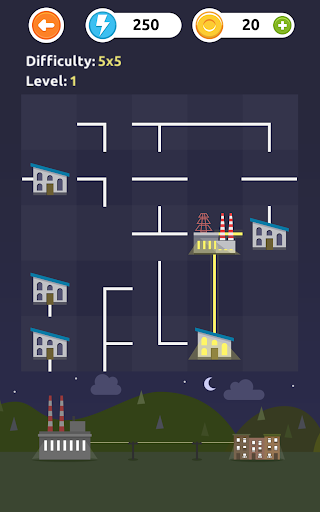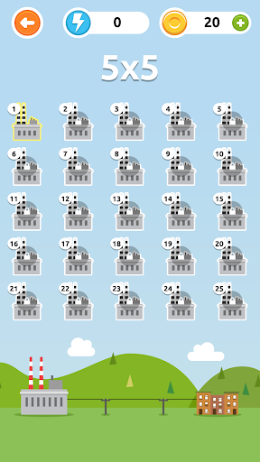 "Powerline" is a free logic puzzle that will exercise your brain as brain teasers. The goal is to light the bulb in every house from power station by adjusting the powerline with wires. At each level is given a certain amount of energy, and with each rotation of a wire it decreases. Try to complete the level in fewer turns, saving more energy, which is summarized and displayed in the rating table. The game has two modes, and if the first for someone may seem easy, on the second mode even the most experienced puzzle lovers will have difficulties . In the case, when you mess up, the game has tips to help you pass the level.