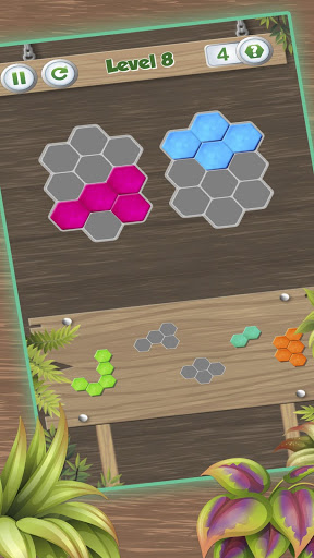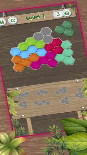 In this game, you must place all the hexagonal pieces to create the shape that is required in each level. You can get clues by passing the levels and playing every day.