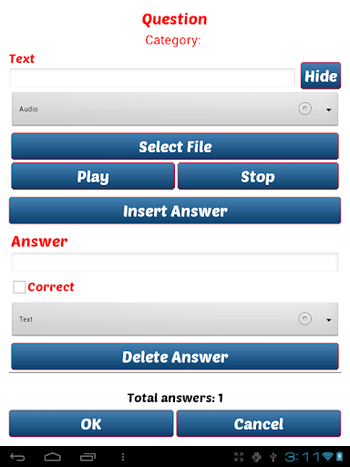 Create your own quiz fast and easy. Quiz Maker lets you create more categories for your questions.