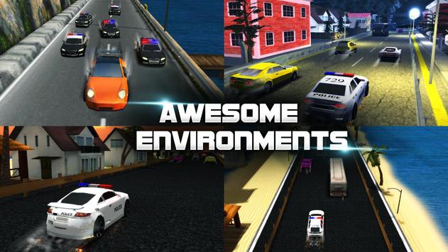 The environments of this police car racing game resembles to familiar city environments that you see in action movies about criminals. Drive through endless tunnels or city roads, or even on an island.