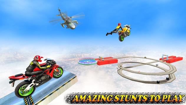 Real heavy Bikes with different shapes and sizes are available in this game you have to select any bike according to your own choice and drive it on the difficult risky roads. Dangerous and risky tracks in the air has been built for Now impossible tracks bike stunt racing game is here available on Google play store for you to drive you to race real bike on them. It will be a great adventure for you to control your bike above the earth in the air on small narrow tracks. Drive heavy bike carefully on impossible tracks, cross road hurdles and reach the destination successfully. Don't make stunts on thrilling tracks it will be dangerous for you so avoid making real stunts so that you could reach the finish point. Anyone can play this game it is an interesting and addictive game for kids, younger's and also for adults.