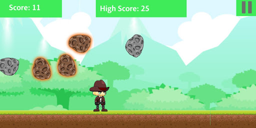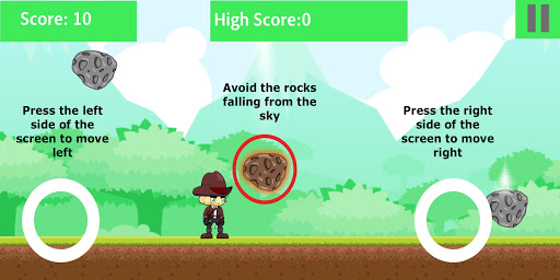 The objective of the game is to survive longer by avoiding the rocks falling from the sky by moving the player to either side. The longer you survive, the more you score.
