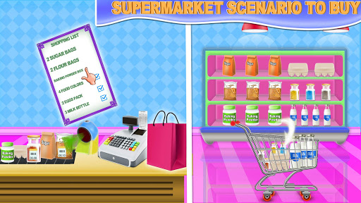 Rainbow cupcake factory game comes with a lot of cooking games and creative activities. Play cupcake maker simulator game and experience real simulation of chocolate cakes making and baking in bakery kitchen business. The cake cooking bakery shop games process starts from mall shopping where you need to do grocery shopping. Buy all crispy ingredients of the cupcake recipe mentioned in checklist. Gather ingredients including milk, sugar, baking powder, flour, flavors and eggs. Pay cash on the cashier counter for food items. Scan the grocery on the cash register with scanner, make bill and pay cash money on cash register being the pro cashier.