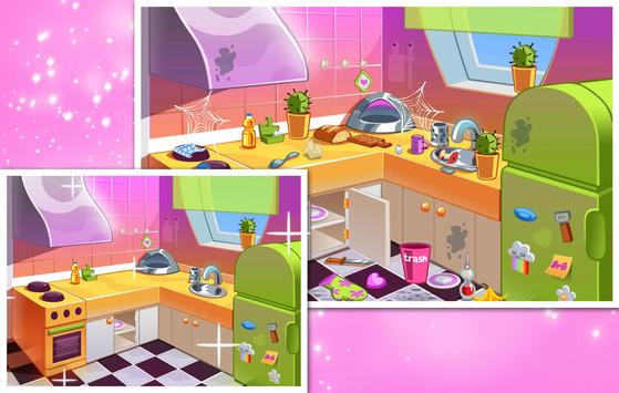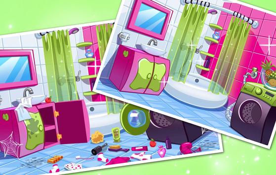 - 8 different rooms to clean from floor to ceiling: bedroom, living room, kitchen, bathroom, bedroom, office, makeup room and a special surprise room!