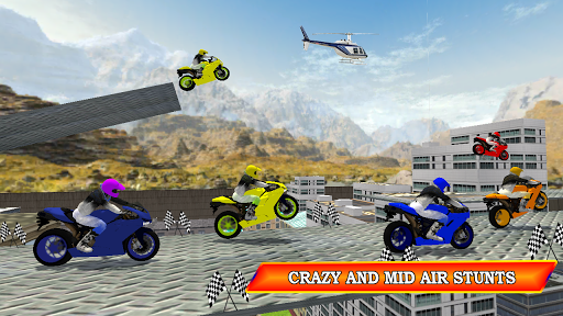 This is the most appropriate stunt racing game for you as all the young generation love to ride a heavy bike. Start your Bike stunt rider now on the beautifully designed biggest mega ramp on the Play Store. Real Bike Stunts is a stunt simulator in which you have to perform amazing and thrilling stunts that will help you score performance points and increase. The most addictive physics based Real Stunt Master Game and Bike Driving is easy to pick up but hard to master which will keep you in the zone for hours. Race jump and crash your way and other mad rivals through the amazing frontier tracks as you master the skills and the physics of bike cross in this high speed racing adventure. Enjoy the fun of riding the most amazing bike models in the world. You can get some custom bikes or even some older classics. Accelerate your bike to the highest speed, survive without falling off the path and reach the other patch of path within the shortest time at the top of city. Ride through different checkpoints before you arrive at your destination. Follow the map to arrive at your destination. Small arrow will help you to find the every next checkpoint in game make your feeling near to realistic. If you not happy with your current bike purchase the other bike with different specification it will help you to enjoy new ride. Take yourself into the world of stunts bikes adventure in game. Speed up you real extreme stunt bike and get ready for fun. There are massive jumps, mid air ramps, a variety of paths, and extreme stunts Steer your bike through bizarre routes and dodge treacherous obstacles. The game has one the best 3D graphics with the motorbikes competition. You can enjoy the feeling of real based stunts like original and accident will also happen that’s why drive carefully. Enjoy very attractive and beautifully designed bike racing tracks. Ride your bike with carefully if you fell down re spawn it from beginning position. Boost up race the most awesome feature in bike game ‘Nitro Boost’. Fill up your nitro by speeding and then use it to reach max speed. Also, you can get several bikes to improve your performance.
