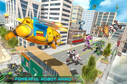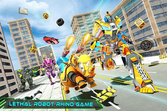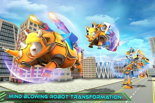 Gear up for rhino fighting a heroic futuristic battle against evil bots in challenging multi robot transformation and crush all robot warriors as well as monster robots hiding in the crime city. Transform your futuristic rhino robot into a giant robot like in multi robot games. Prove yourself as a responsible superhero robot as in futuristic robot games or you might have seen in car transforming games. Prepare yourself for upcoming future robot battles, train your rhino robot & learn to transform it into a robo warrior in this rhino simulator.