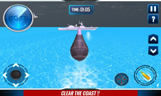 Experience underwater as naval commander of a ship in submarine games war simulator. Feel like participating in navy games and get the thrill of sinking enemy boats on the pacific rim of war simulator. Avoid touching any mines in the minefield of the ocean or the heavy explosion in the deep sea may sink your submarine simulator. Enjoy raging through water in this warship, the ultimate military secret weapon to target and attack both deep sea and aerial crafts with perfection in world war navy games.